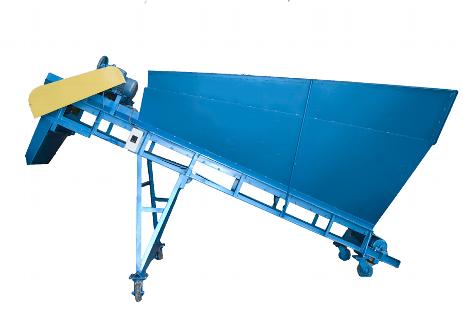 The storage conveyor is the bridge between the mixer and the bagging machine. It stores several loads of material from the mixer before the bagging machine starts. The storage conveyor transfers sawdust into the bagging machine while it fills the bags. This keeps the bagging machine running without any stops.